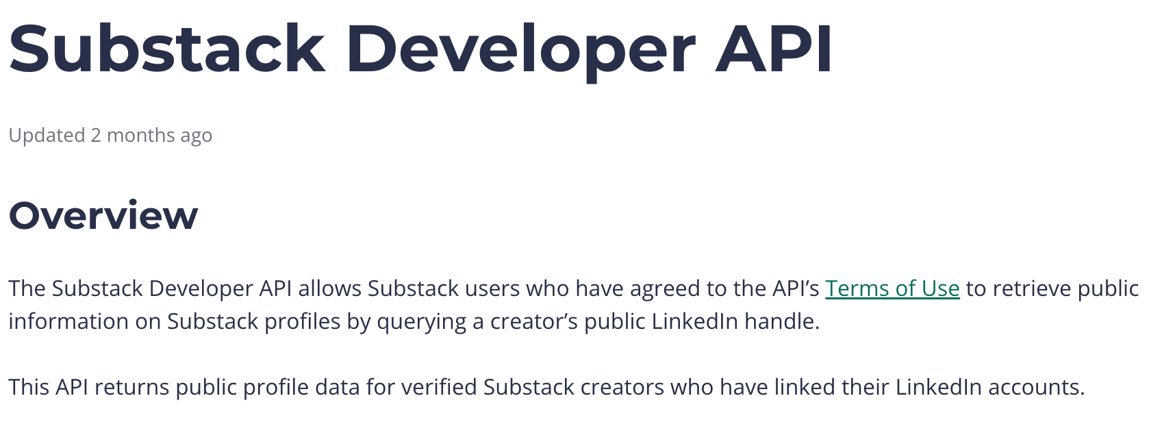 Don’t ask us what Substack has to do with LinkedIn… but apparently this is the only thing you can do with their API.
