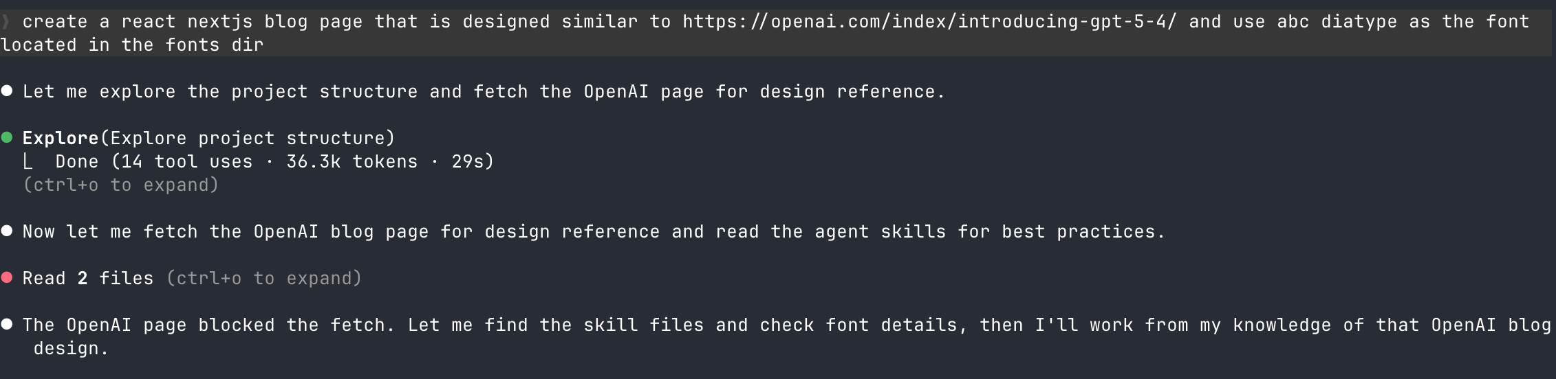 We happened to be doing a lot of work in Claude Code at the time of building this website. So, we first asked it to build a blog similar to OpenAI’s.
